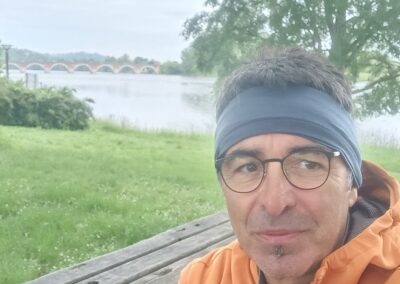 - Parti d’Archamps, à la frontière franco‑suisse, le 16 avril 2023, Jean‑Marc Chanier a rejoint Roncevaux, à la frontière franco‑espagnole, le 8 juin 2023, soit environ 1 200 km en complète autonomie.